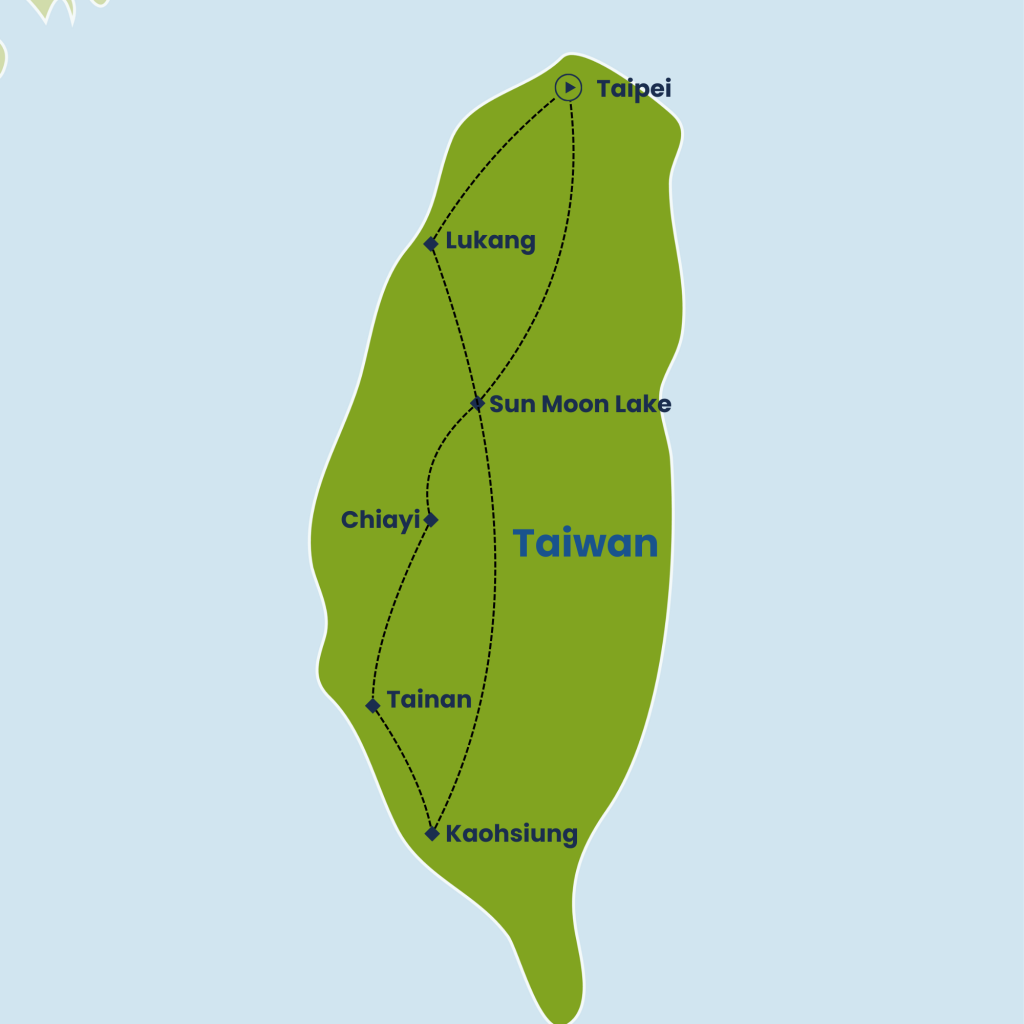 Continue to Kaohsiung, Taiwan’s bustling southern port city. Visit Fo Guang Shan Monastery, one of Asia’s largest Buddhist complexes, featuring towering Buddha statues and peaceful courtyards. Later, explore Pier-2 Art Center, a creative hub filled with murals and sculptures, and unwind with a scenic walk along Love River. In the evening, sample street food delights at Liuhe Night Market.