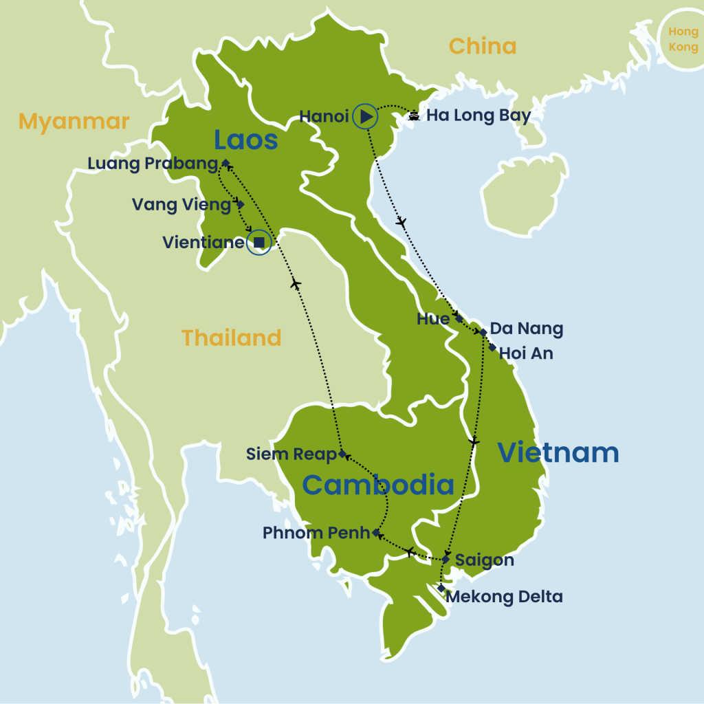Today we will drive to Vientiane, capital and the largest city of Laos and enjoy the relaxed atmosphere unlike the typical hustling and bustling cities of Southeast Asia. This historic old French colonial quarter beguiles glittering temples and statues, sleepy tuk tuk drivers, wandering Buddhist monks and boulevards lined with frangipanis. Explore the charming capital starting with a TukTuk ride from your hotel to the iconic Phatuxay Monument. Walk down Lane Xang Avenue, stopping at the Morning Market and the Cooperative Orthotic & Prosthetic Enterprise (COPE). Visit Wat Si Muang and Wat Sisaket, before stopping at the Presidential Palace. Get re-energised with a Lao coffee and croissant at Anouvong Park. Visit a series of temple before reaching the Mekong riverbanks. We will end this tour with a delightful farewell dinner, celebrating the memorable experiences and beautiful moments shared throughout the journey.