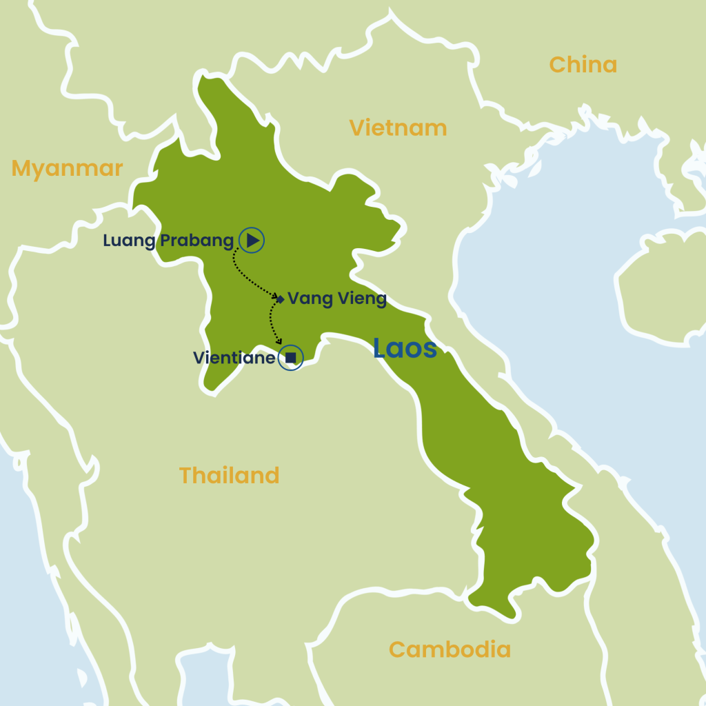Explore the charming capital starting with a TukTuk ride from your hotel to the iconic Phatuxay Monument. Walk down Lane Xang Avenue, stopping at the Morning Market and the Cooperative Orthotic & Prosthetic Enterprise (COPE). Visit Wat Si Muang and Wat Sisaket, before stopping at the Presidential Palace. Get re-energised with a Lao coffee and croissant at Anouvong Park. Visit a series of temple before reaching the Mekong riverbanks. Hop-on a TukTuk ride back to your hotel and prepare for our journey to Vang Vieng.