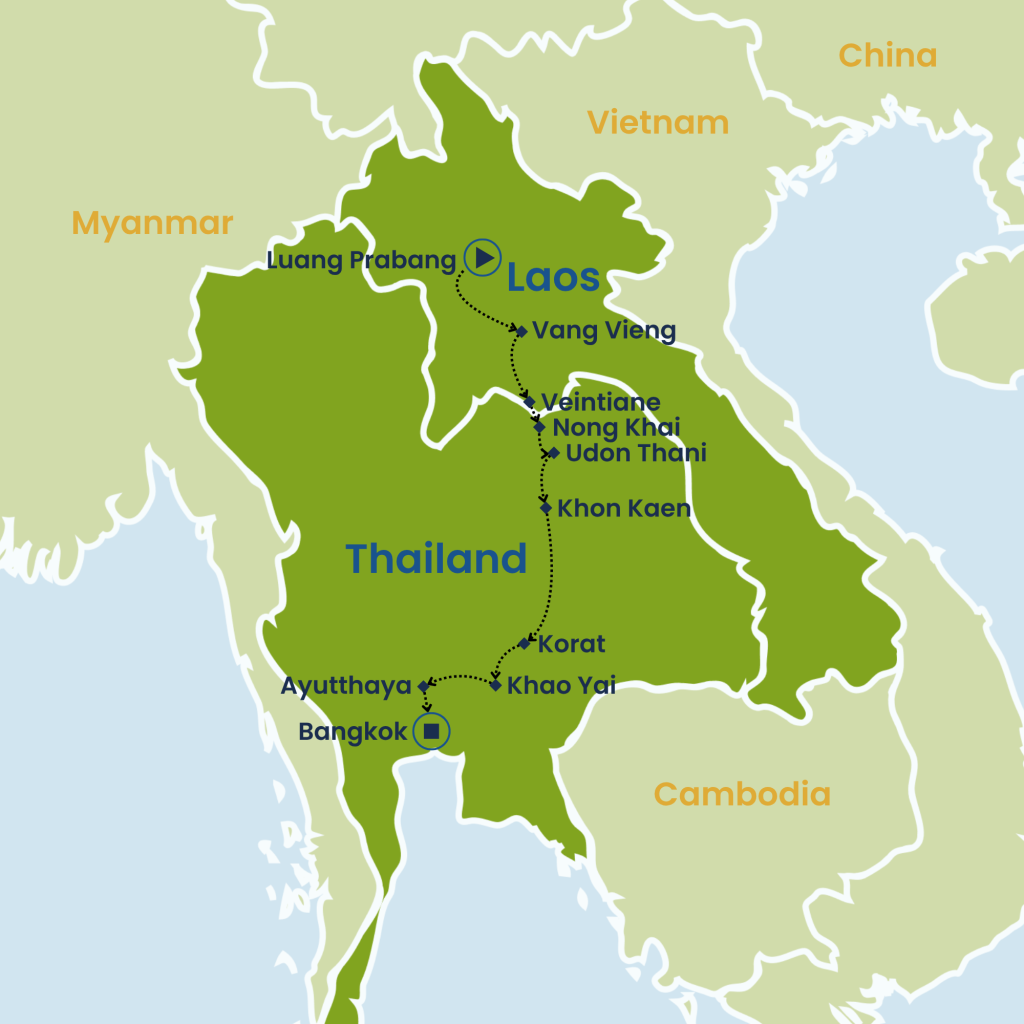 Today we will drive to Vientiane, capital and the largest city of Laos and enjoy the relaxed atmosphere unlike the typical hustling and bustling cities of Southeast Asia. This historic old French colonial quarter beguiles glittering temples and statues, sleepy tuk tuk drivers, wandering Buddhist monks and boulevards lined with frangipanis. Explore the charming capital starting with a TukTuk ride from your hotel to the iconic Phatuxay Monument. Walk down Lane Xang Avenue, stopping at the Morning Market and the Cooperative Orthotic & Prosthetic Enterprise (COPE). Visit Wat Si Muang and Wat Sisaket, before stopping at the Presidential Palace. Get re-energised with a Lao coffee and croissant at Anouvong Park. Visit a series of temple before reaching the Mekong riverbanks. We will end this tour with a delightful farewell dinner, celebrating the memorable experiences and beautiful moments shared throughout the journey.