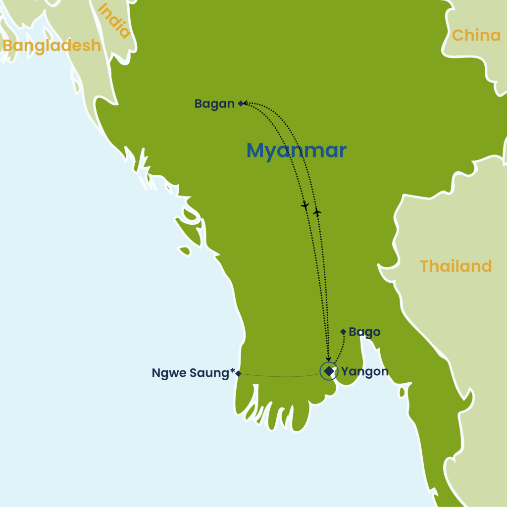 Upon your arrival at Yangon International Airport, meet your guide and transfer to your hotel for check-in. Take some time to settle in and prepare for the exciting journey ahead. Overnight in Yangon.