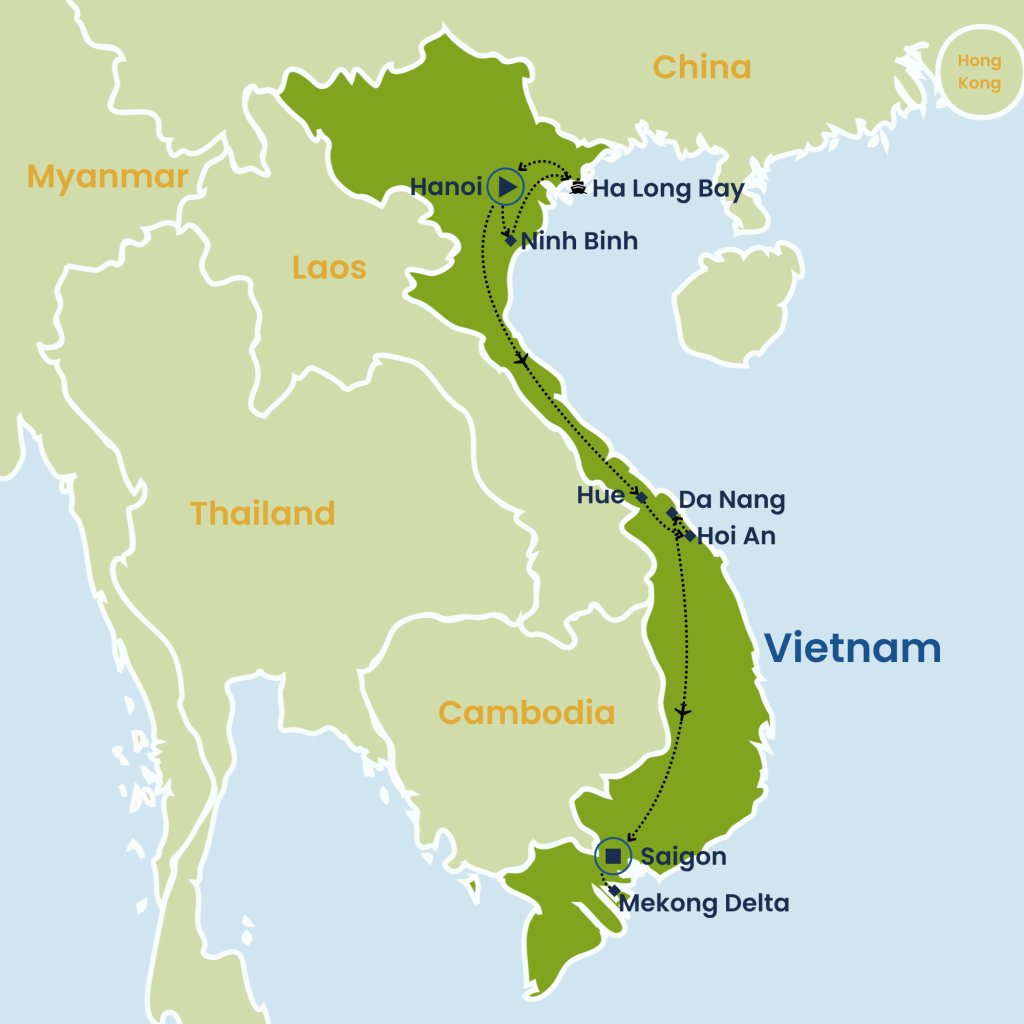 Discover Vietnam with our Insider Experiences: Immerse yourself in the vibrant culture of Hanoi and Saigon, where the smiling locals and bustling streets create a lively atmosphere. Sail through the stunning emerald waters of Halong Bay on a traditional junk boat, a UNESCO World Heritage site. Wander through the ancient towns of Hanoi and Hue, rich in history and cultural relics. Experience the serene beauty of the Mekong Delta, with its tranquil villages, bustling floating markets, and diverse cultural tapestry. This journey offers a captivating blend of city excitement, natural beauty, and historical exploration.